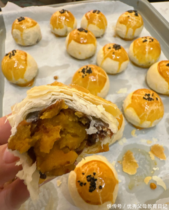 看得出来这位妈妈十分的心灵手巧,她自己做了蛋黄酥,还买了两种小蛋糕,还有一碗馄饨,就等着孩子回家之后可以大快朵颐。