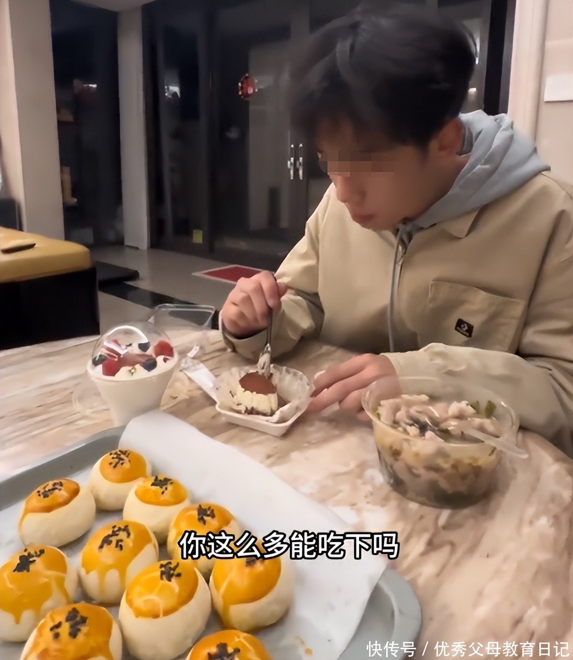 很多家长养成了一个习惯,就是无论高中晚自习下课有多晚,他们都要在深夜准备一份宵夜给孩子们吃,有位妈妈就晒出了自己家高二男孩子回家吃夜宵的场景。
